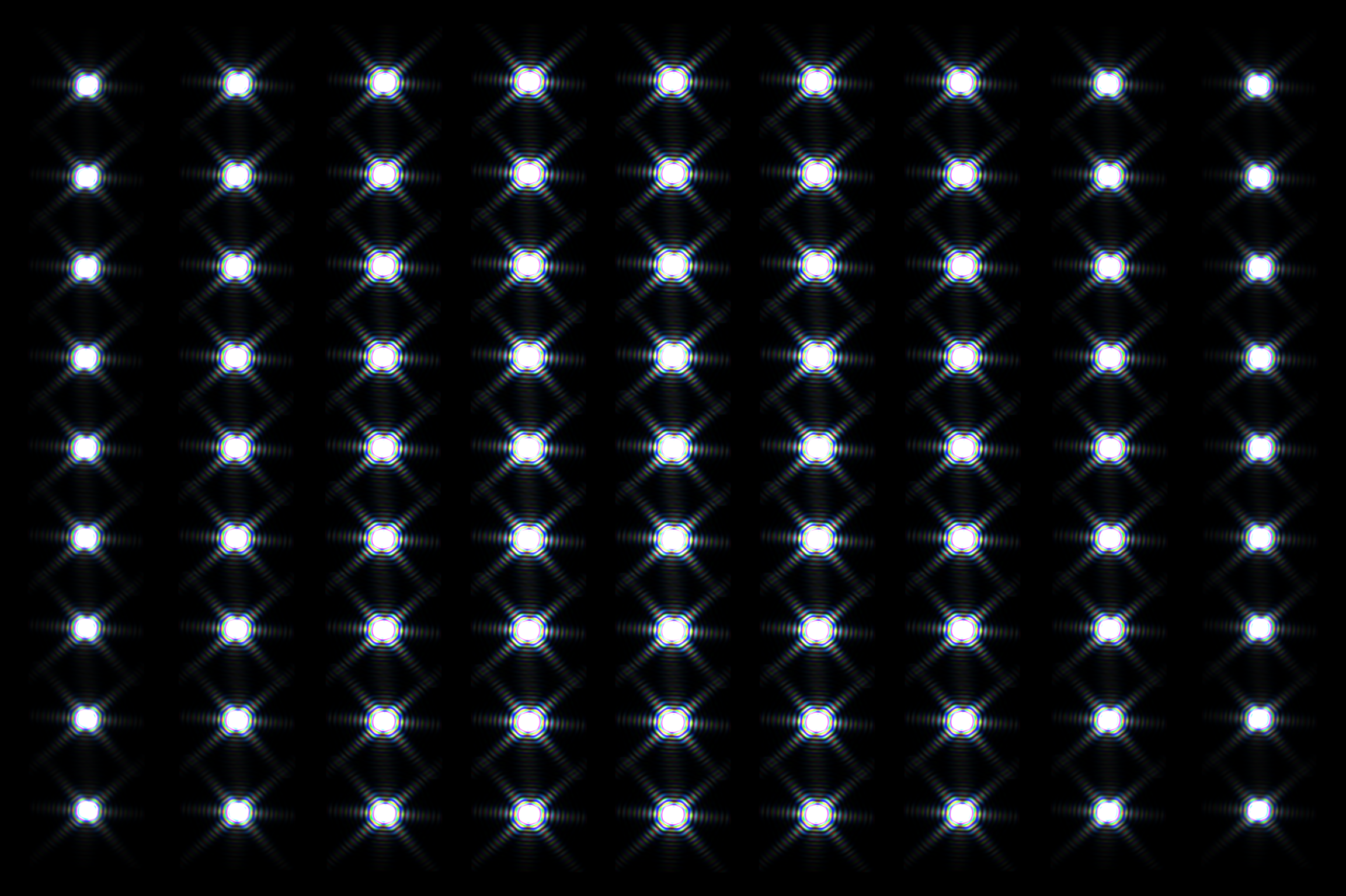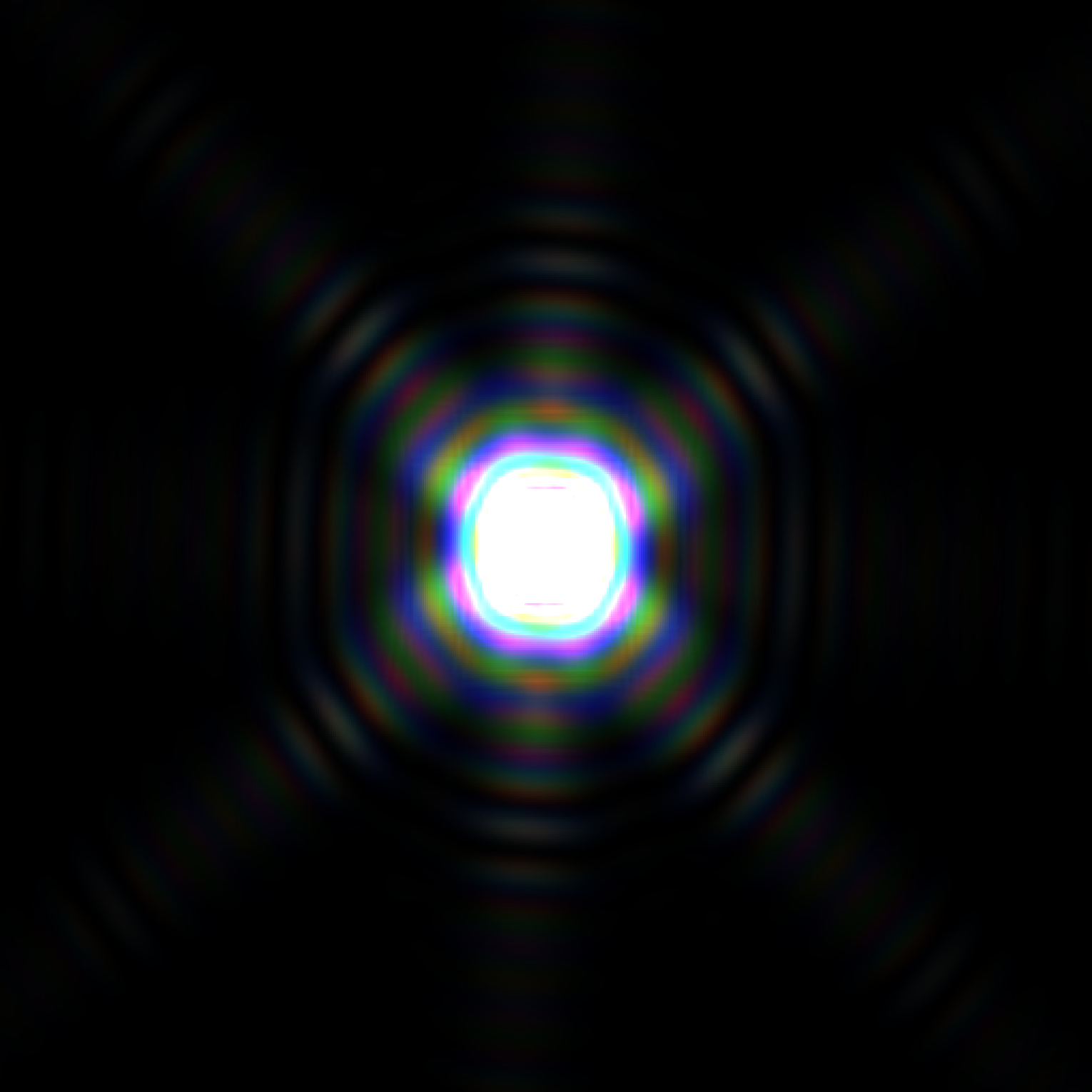 While the effect of diffraction is not visible in most scenarios of photographic applications, it will show up when the aperture is stopped down and there are bright point lights in the scene.