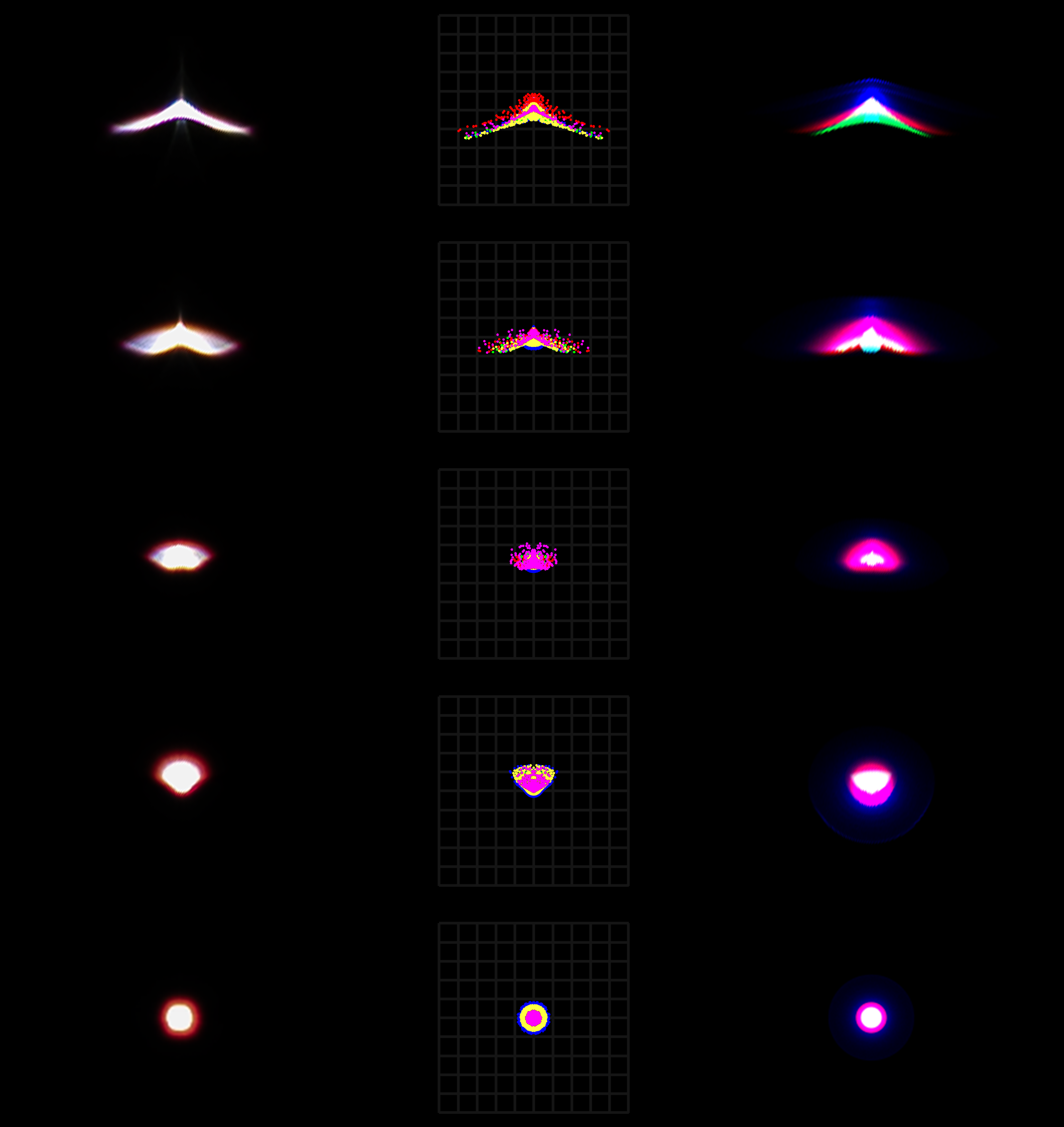 Having the imager as a separate class also allows easy control over the image resolution, combined with CUDA, the framework allows fast tracing over a high sample count. The neighboring images shows spot tracing on a 24MP imager. Note that due to the conservation of energy, the off-focus spots were overexposed for about 6 stops to have a comparable brightness.