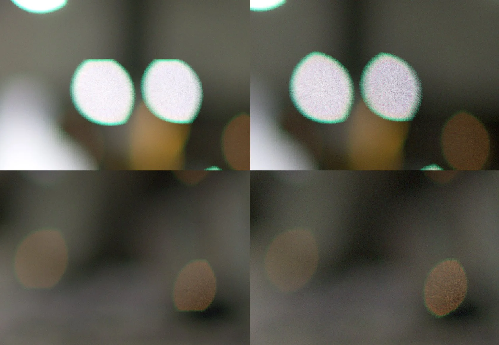 The Helios-44 is possibly the most popular vintage lens out there, this once $5 soviet lens has jumped to around $150 after being used in the 2022 the Batman and 2024 Dune Part II. One common mod people do on the Helios is to reverse the front element. This will make the second surface to introduce an absurd amount of coma, astigmatism, and spherical aberration, which remains under-corrected throughout the lens. The image pair on the left shows the ordinary result of Helios-44 (top) and when the front element is reversed (bottom).